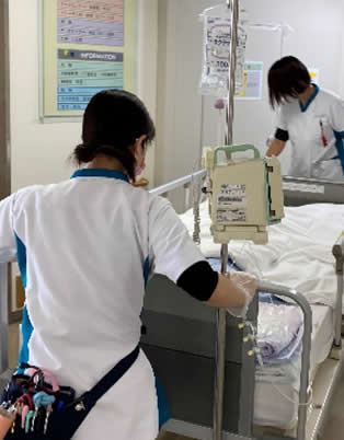 順番で看護師がお迎えに伺います 歩行、車椅子、ベッド等で入室します (入れ歯などはこの時にはずしていきます) |
