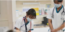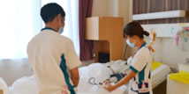 検温・清潔ケア 先輩と看護師と一緒に患者さんの状態チェック。多方面から観察、 バイタルサイン測定を行い看護記録を行います。 患者さんのオムツ交換や口腔内清拭などを行います。 |